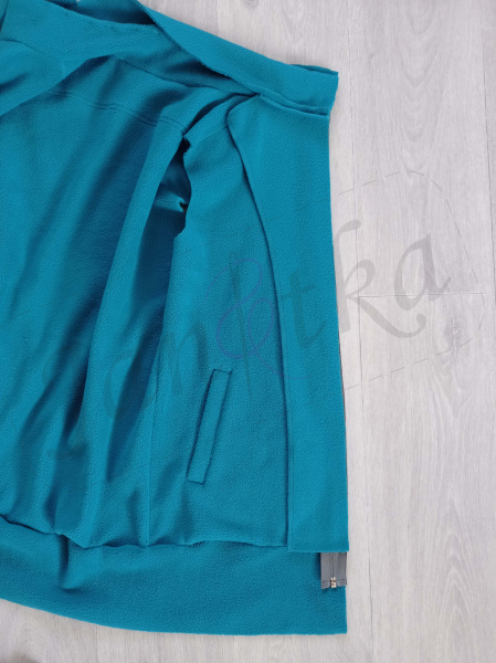 1. V případě všívání nápletu do dolního kraje si před všíváním zdrhovadla sešít boční švy a sežehlit (překlopit) do ZD. Na mikině jsou již vypracované kapsy a všitý stojáček v průkrčníku mikiny.